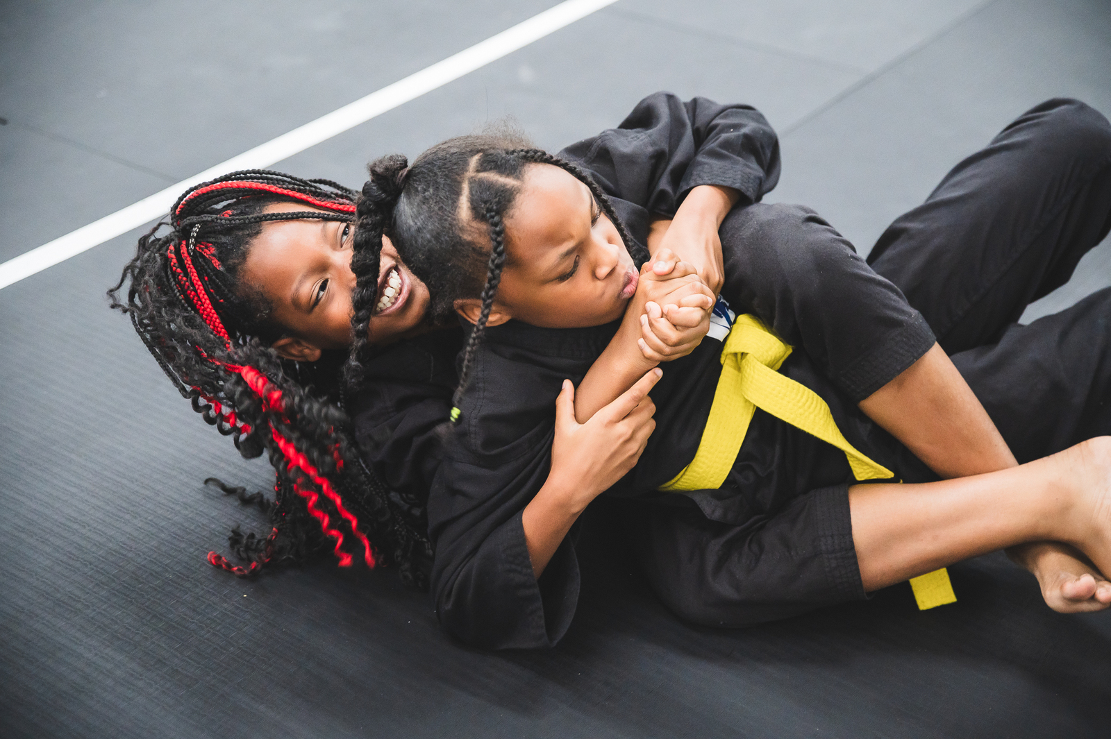 Safe + Controlled: Kids don’t throw punches or kicks, which lowers the risk of injury. Instead, they practice takedowns, escapes, and holds in a supervised, padded environment.